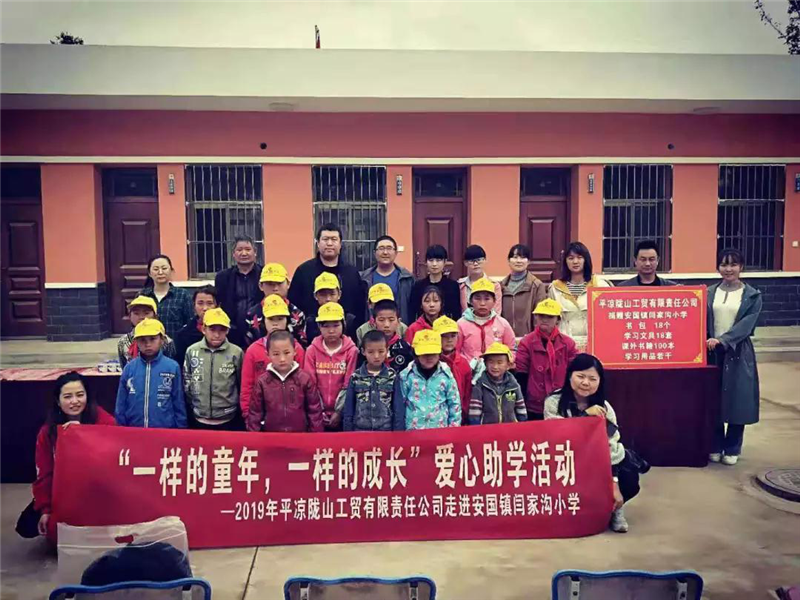 2019年年度我公司向平?jīng)鍪嗅轻紖^(qū)安國鎮(zhèn)閆家溝小學(xué)及平?jīng)鍪袃和@壕栀浗?0萬元的物資,其中包括書籍、學(xué)習(xí)用品、棉衣、床、沙發(fā)、茶幾等生活用品(已在平?jīng)鍪邢嚓P(guān)網(wǎng)站公示)得到了相關(guān)領(lǐng)導(dǎo)的好評并頒發(fā)“愛心卡”。